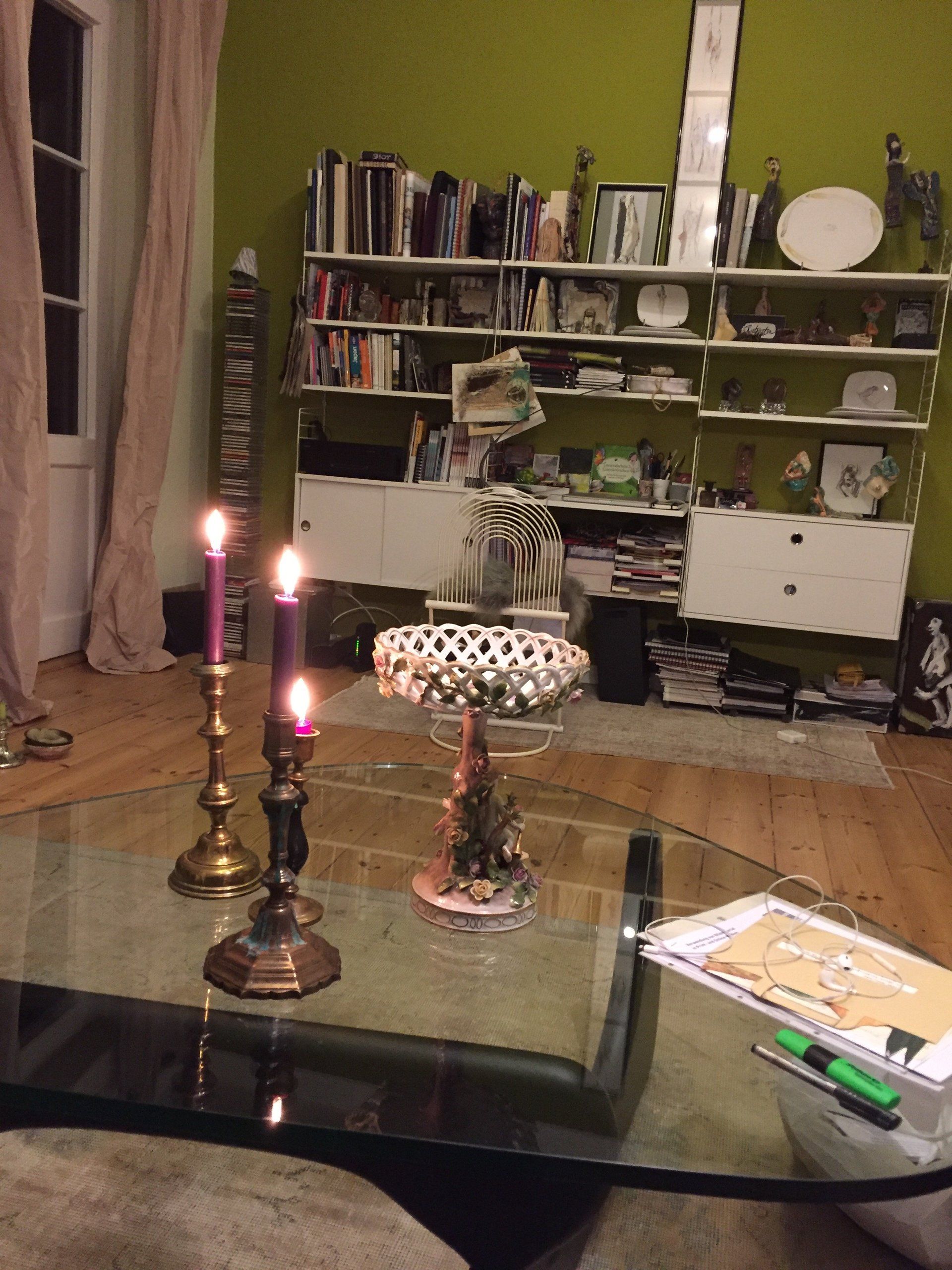 The images of the dream emerge as a reflection of the state of waking - the musician conveys the interplay of feelings, thoughts and visions, from which the artistic process and its result, the artistic work in space II, emerge. Painted paper webs symbolize the work in the background at the easel. They are then hung up for everyone to see.